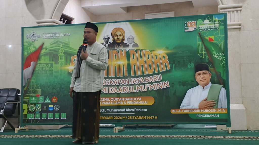 SAJADA.ID – Pengurus Ranting Nahdlatul Ulama (PRNU) Rangkapan Jaya Baru menggelar Ruwahan Akbar di Masjid Jami Daarul Mu’minin, Ahad (16/2/2026) bertepatan 28 Sya’ban 1447 H.