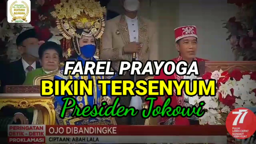 Farel Prayoga, seorang penyanyi cilik yang viral dengan lagunya "Ojo Dibandingke" tampil memukau dihadapan Presiden Joko Widodo dan peserta upacara bendera memperingati HUT ke-77 RI di Istana Negara, Rabu, 17 Agustus 2022.