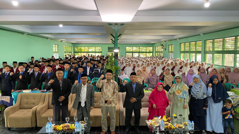 Kang Abik (baju batik) berfoto bersama dengan Pimpinan dan Pengasuh Ponpes Daarussalaam Depok, Kyai M. Syafe'ie serta KH. M. Thohir Manaf M.MPd, beserta para dewan guru dan santri, pada acara Milad ke-33 Ponpes Daarussalaam, dan Maulid Nabi Muhammad SAW.