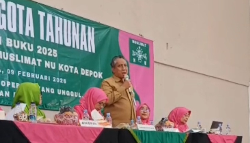 Kepala Dinas Koperasi dan Usaha Mikro Kota Depok, Moh. Thamrin saat memberikan sambutan pada acara RAT Koperasi Annisa Muslimat NU Depok, Senin (9/2/2026).