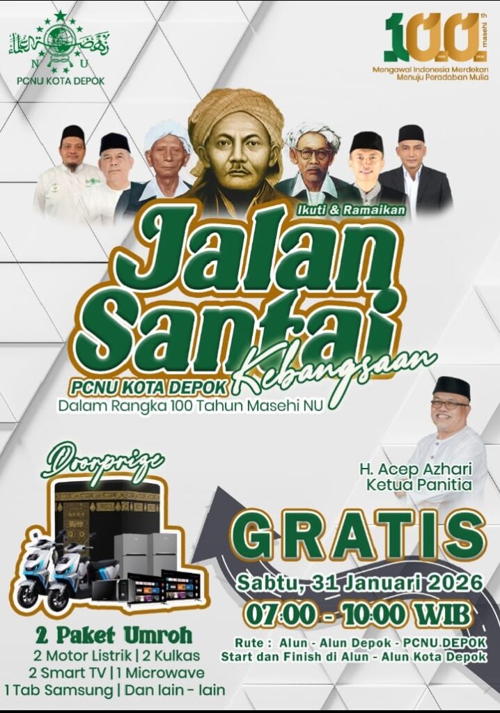 SAJADA.ID, DEPOK – Menjelang peringatan satu abad Nahdlatul Ulama pada 2026, Pengurus Cabang Nahdlatul Ulama (PCNU) Kota Depok menyiapkan rangkaian kegiatan yang menegaskan peran NU bagi bangsa. Salah satunya melalui Jalan Santai Kebangsaan yang akan digelar pada Sabtu, 31 Januari 2026, dengan rute start dan finish di Alun-Alun Kota Depok.
