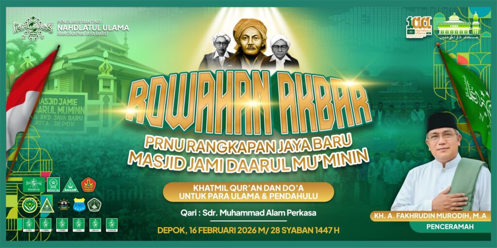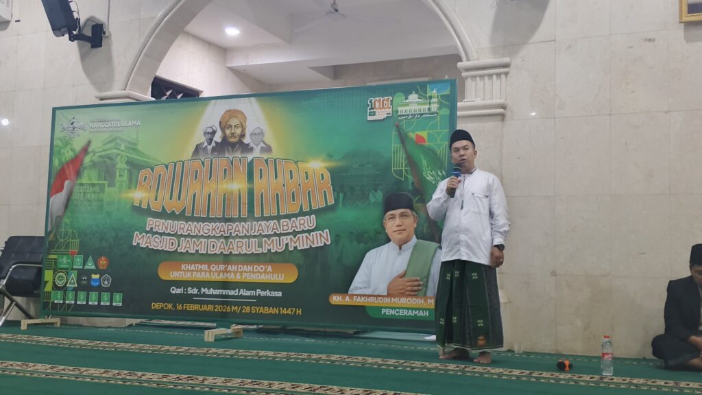 SAJADA.ID – Suasana Masjid Jami Daarul Mu’minin, Rangkapan Jaya Baru, Pancoran Mas, Kota Depok, terasa khidmat pada Ahad malam (16/2). Sejumlah jamaah menghadiri acara Ruwahan Akbar yang diselenggarakan PRNU Rangkapan Jaya Baru.